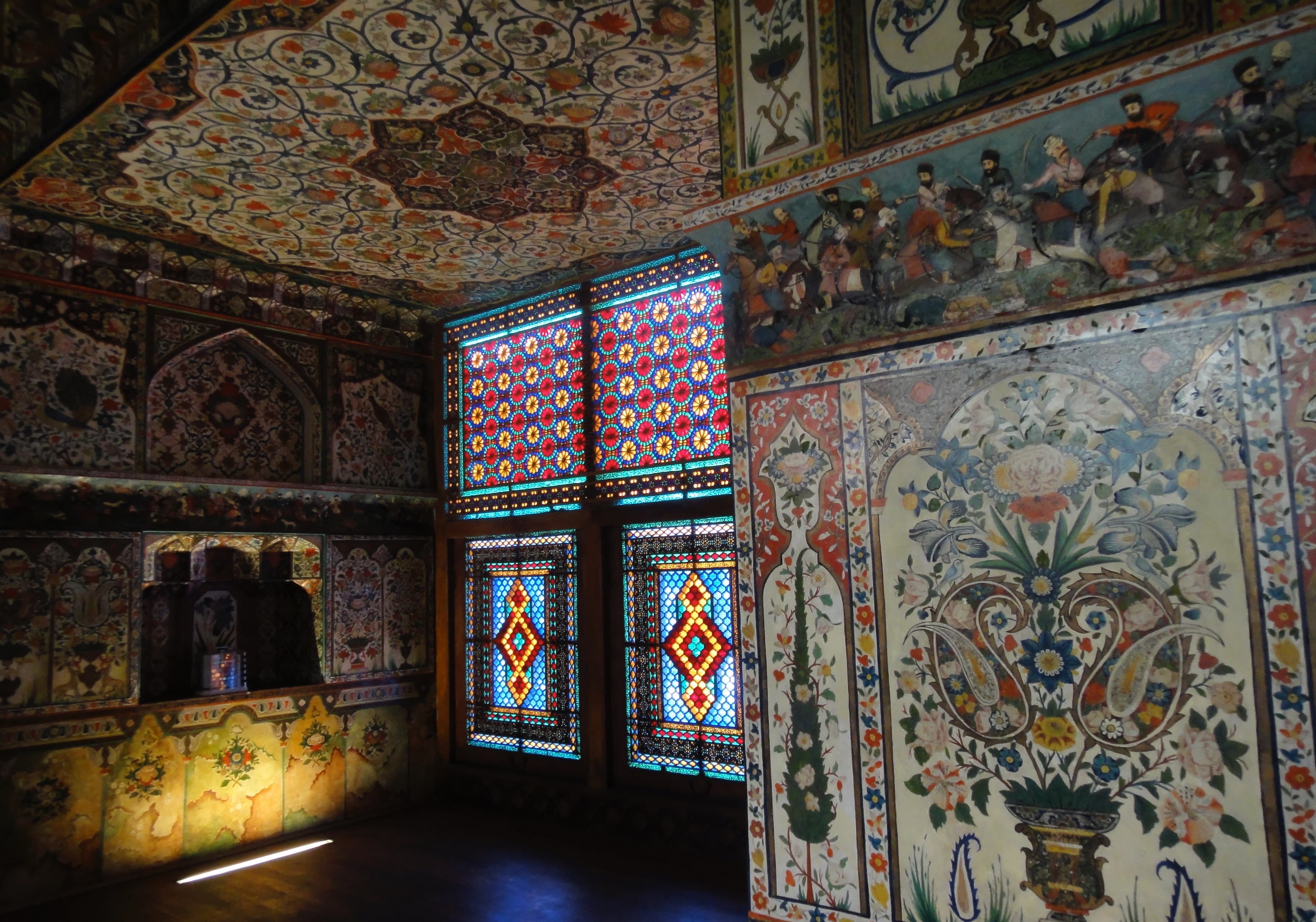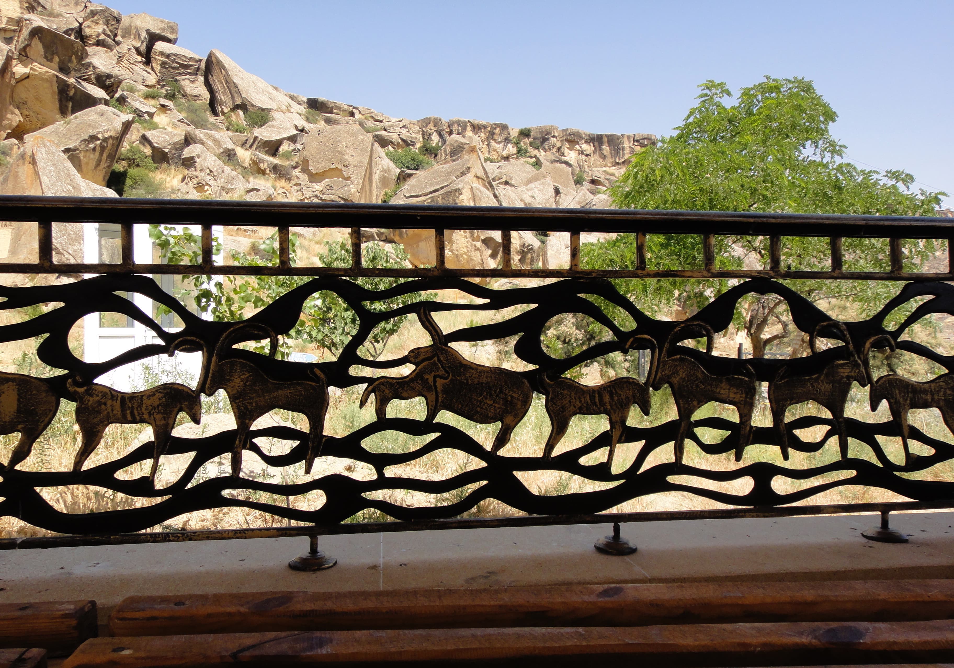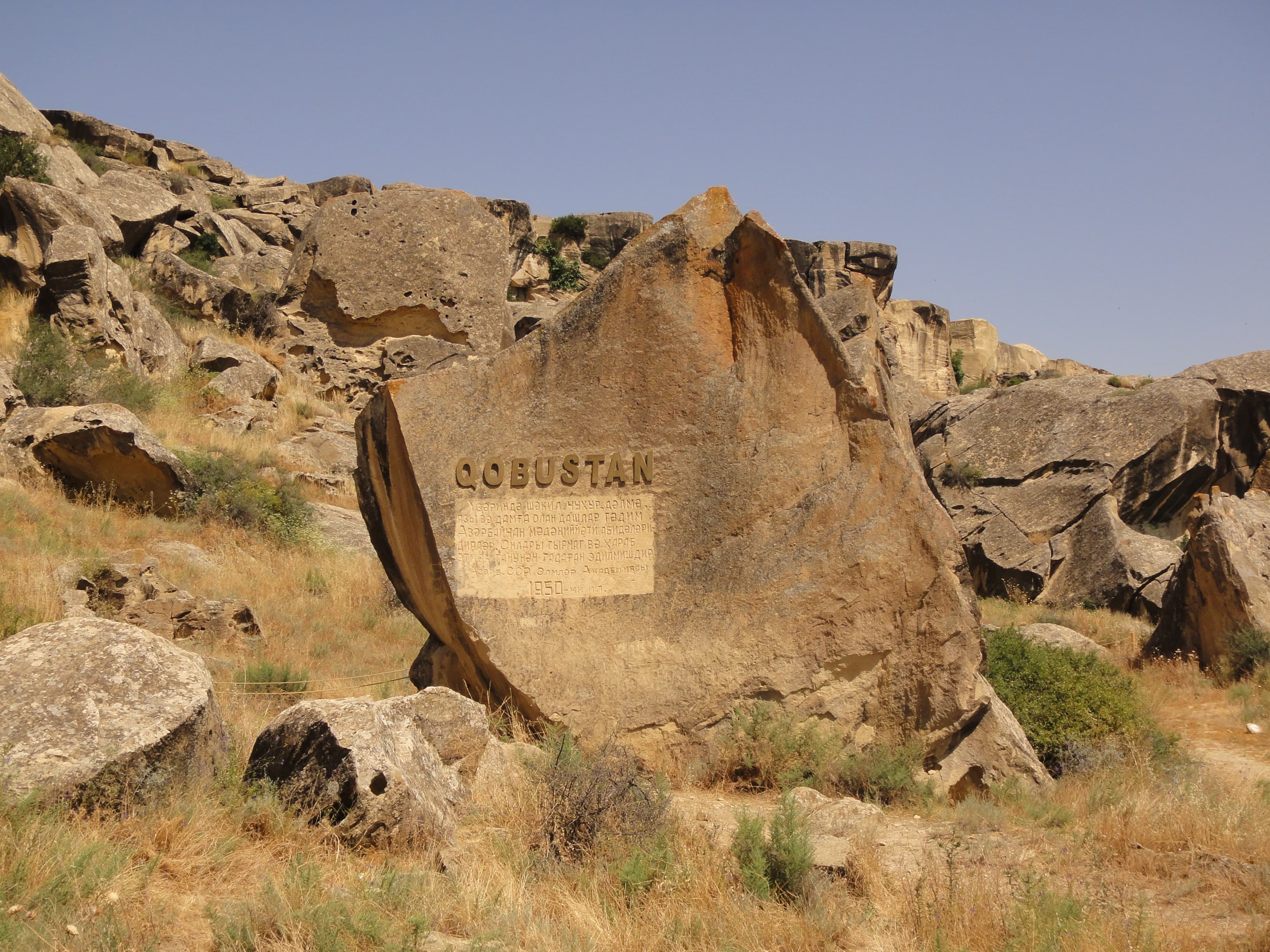 ゴブスタン の岩絵 ゴブ(砂漠)スタン(〜の場所) メッカの方向を指すミフラーブ、昔のキッチン、たたくと反響するガワルダシュという岩 |