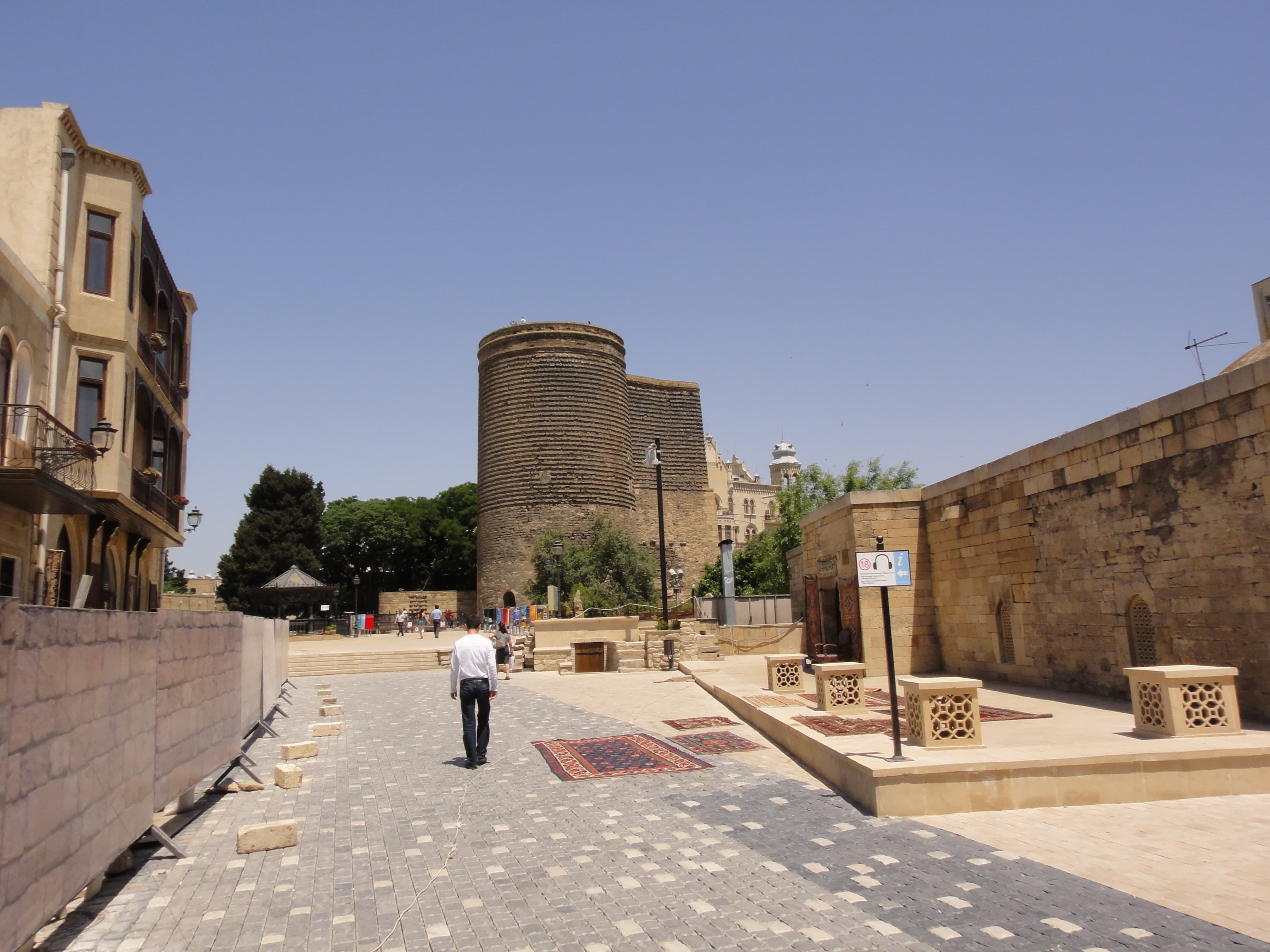 乙女の塔 27m 7階建て ドロアスター教徒だった土地の人々は塔のてっぺんから火の神様・太陽に助けを求めました。神は自分の娘アスタナを地上に送り助けるよう命じました。自ら塔の上から身を投げ、その赤い髪の毛は炎となり侵攻してきた他民族を焼き払ったという伝説 |