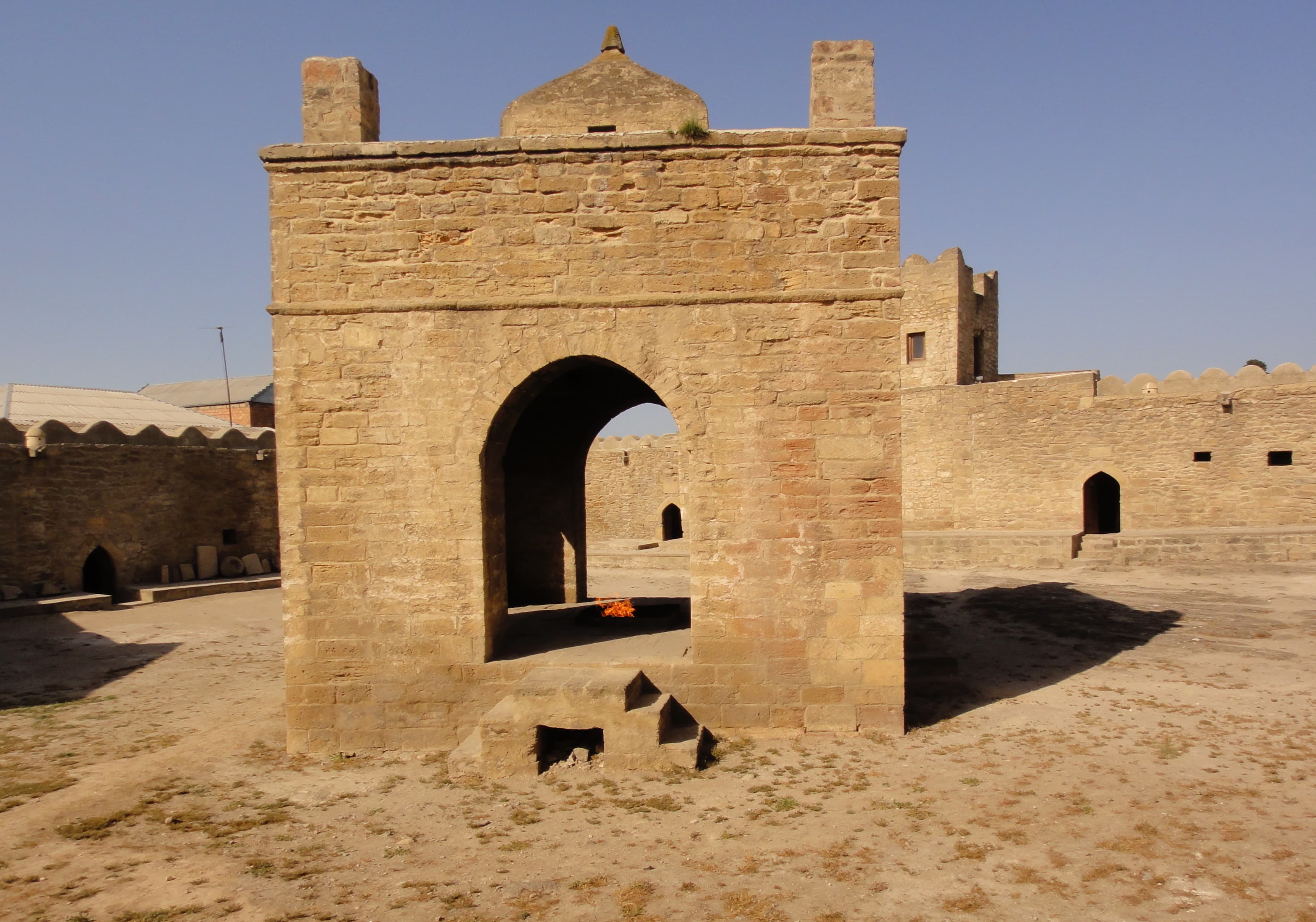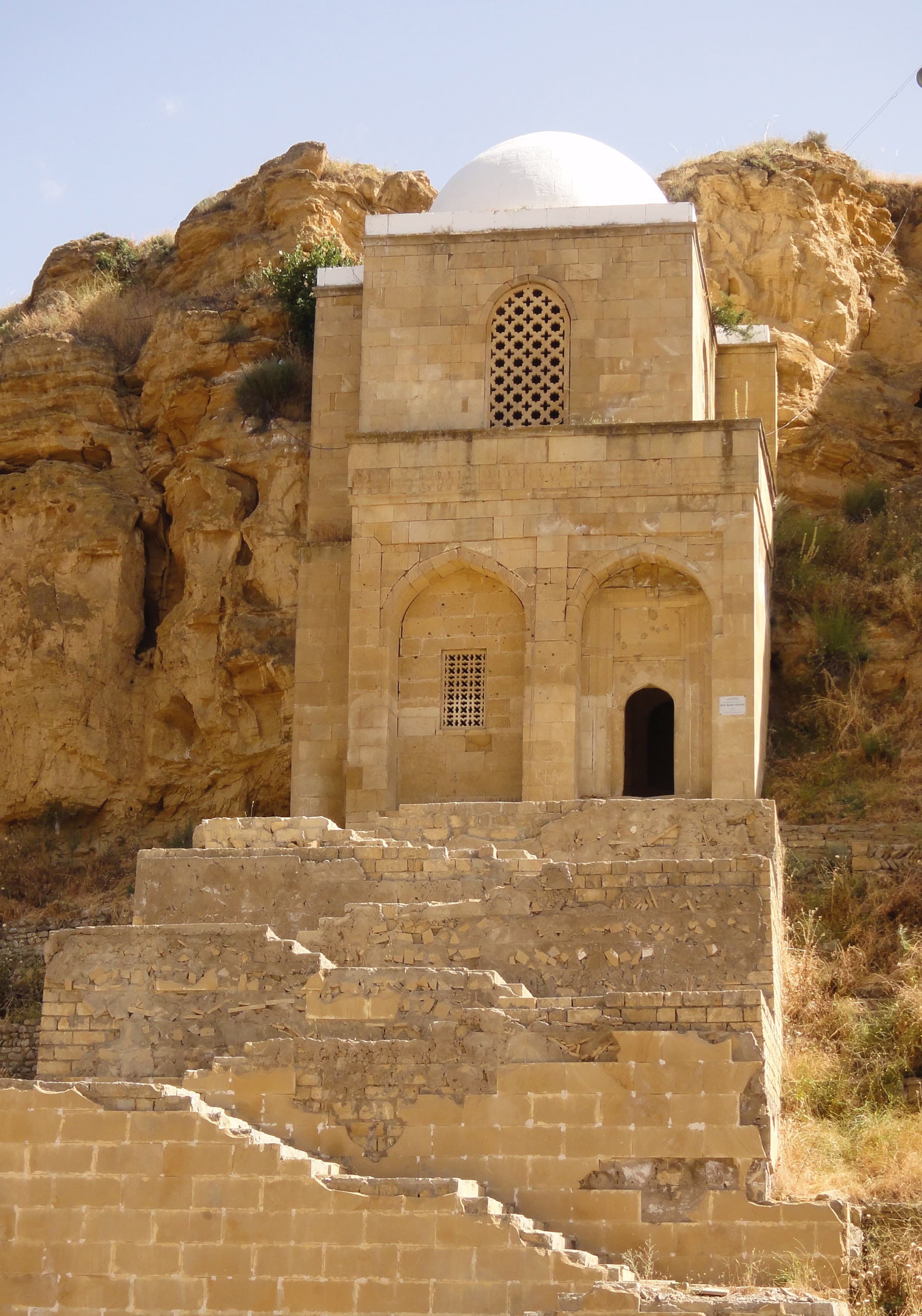 バクーを離れシャマフを通りシェキへ向かいます。途中のマラザ町にあるディリ・ババ廟 7世紀イスラム教の廟 以前はゾロアスター教の水の神様を奉る寺院 |
